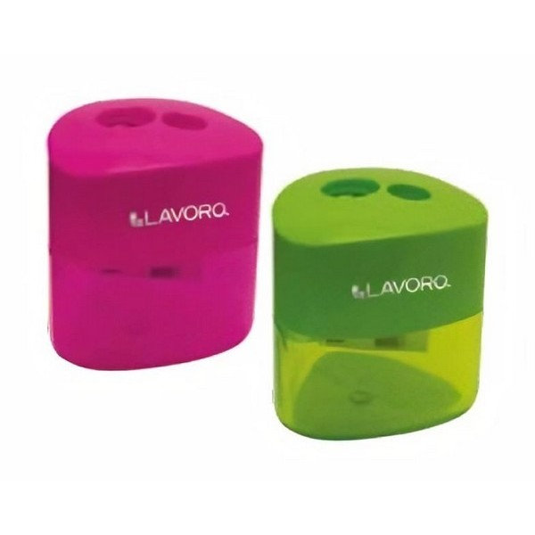 Sacapunta plástico triangular con 2 orificios y con déposito Marca Lavoro