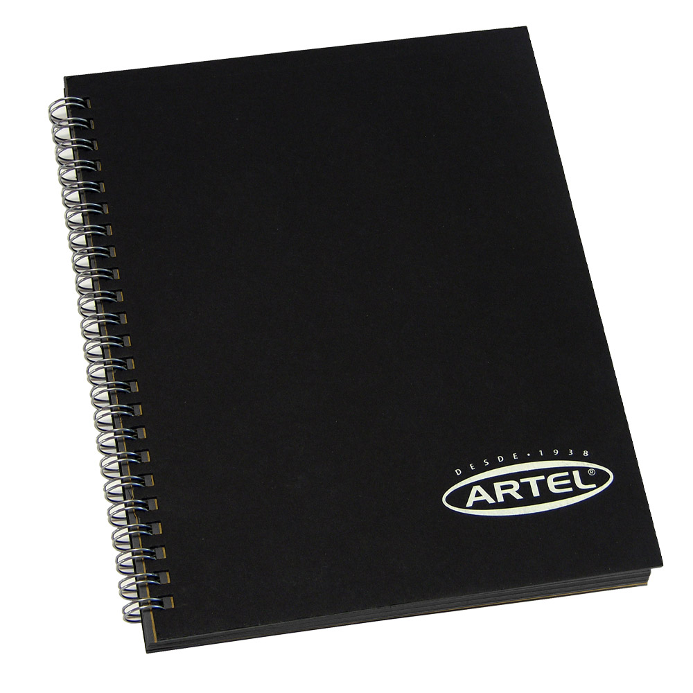 Características: Papel negro 170gr, 50 hojas, espiral lateral, doble anillado alta resistencia, tapa y contratapa de cartón negro.