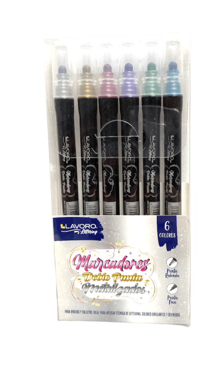 MARCADOR METALIZADO DOBLE PUNTA 6 COLORES LAVORO