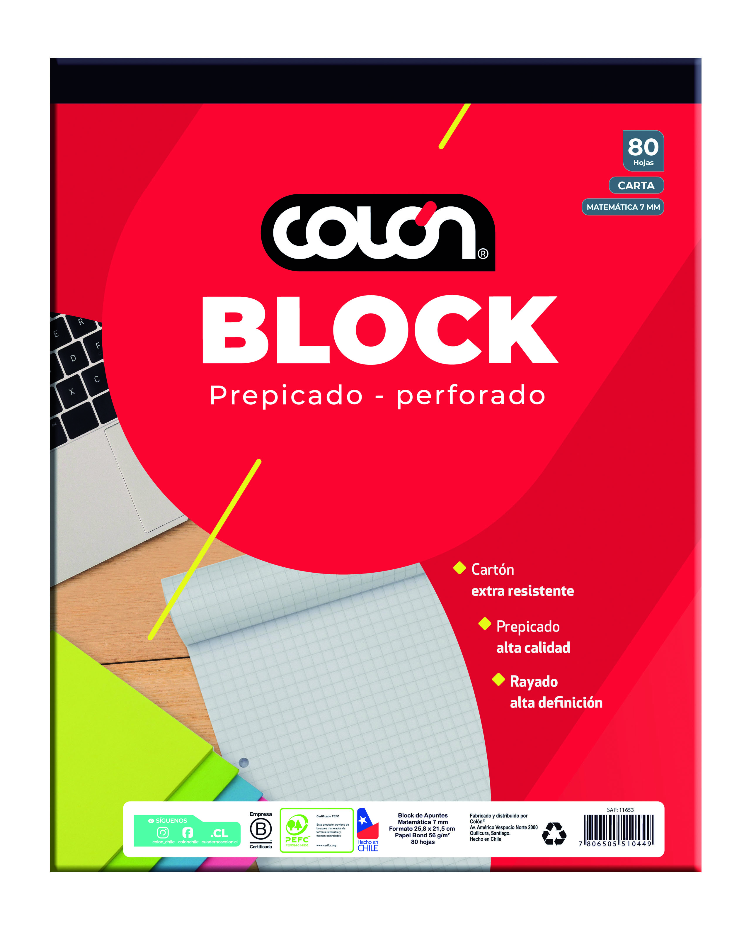 El block carta prepicado de matemáticas Colón es un artículo escolar ideal, es blanco, cuenta con 80 hojas y además de ser prepicado, tiene las hojas perforadas para que puedas escribir tus apuntes y ponerlos donde tú quieras