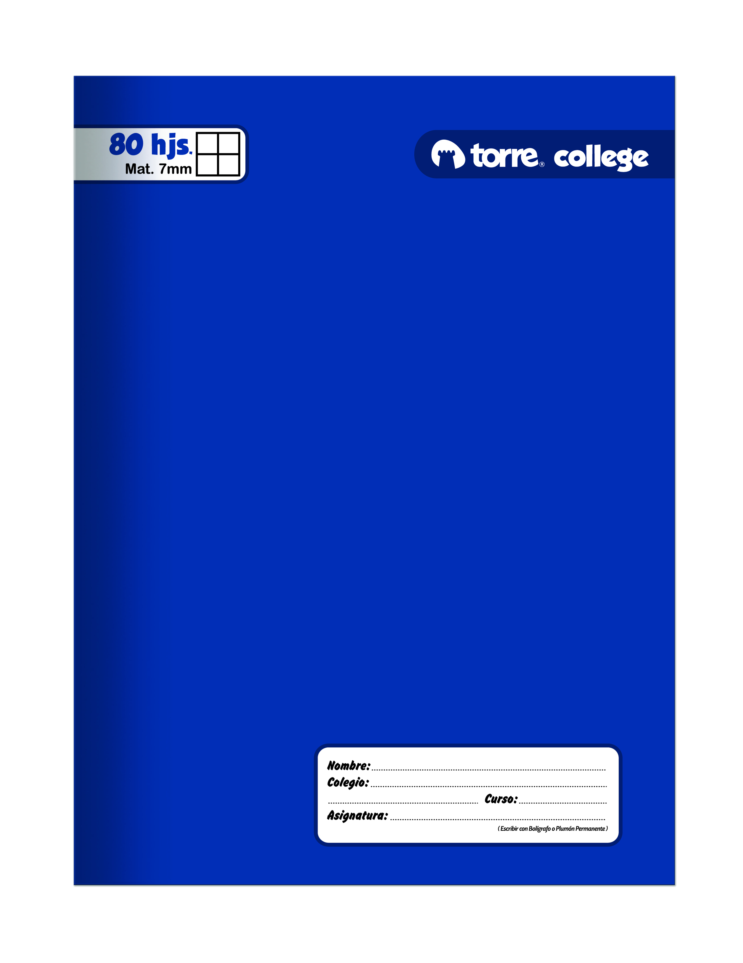 CUADERNO COLLEGE LISO 7MM. 80HJS. TORRE